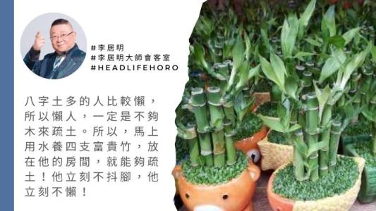 甚麼叫做「男抖窮,女抖賤」?即「郁身郁勢腳䟴䟴」。如果你老公或仔是這樣,你怎樣辦?從八字上演繹,為甚麼有些人會抖腳?原因是不夠木!因為土埋金,必須不停抖腳,令到自己疏土。之前說了,八字土多的人比較懶,所以懶人,一定是不夠木來疏土。所以,馬上用水養四枝富貴竹,放在他的房間,就能夠疏土!他立刻不抖腳,他立刻不懶!