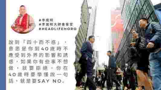 一個人在15歲要立志,30歲要令自己的事業愈做愈大,說到「四十而不惑」,意思是你到40歲時不應受到外界的影響和誘惑,如果你有些事不想做,就要拒絕。你在40歲時要學懂說一句話,就是要Say No。