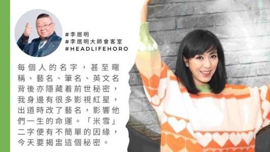 每個人的姓氏跟隨父親、祖父及祖先,每個人的名字,甚至暱稱、藝名、筆名、英文名背後亦隱藏着前世秘密,我身邊有很多影視紅星,出道時改了藝名,影響他們一生的命運。影視圈紅星米雪小姐和賴慰玲小姐,兩人都是在行「辛卯」大運的時候與我合作《粵劇靈》,又有何前世玄機呢?「米雪」二字更有不簡單的因緣,今天要揭盅這個秘密。米雪的名字不是當年羅馬導演改名這麼簡單!