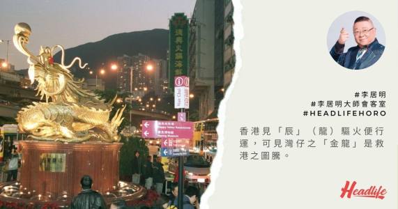 香港行衰運,罪在見「午」(馬),見「丑」(牛)散熱,見「辰」(龍)驅火便行運。在灣仔跑馬地旁,見一金龍,此物之興建,主要應運散去跑馬地因經常跑馬而增加「馬」(火)之凶!可見灣仔之「金龍」是救港之圖騰。