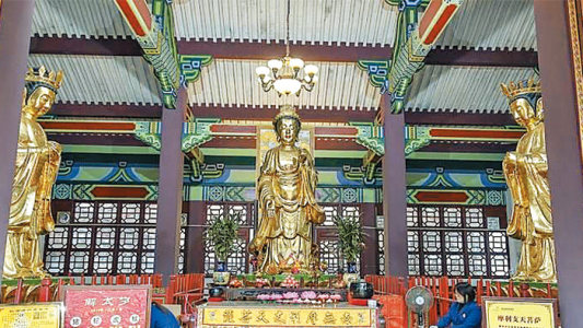 曾為鄭芝龍打勝仗的水月宮摩里支天像,觀音像在其左手邊。