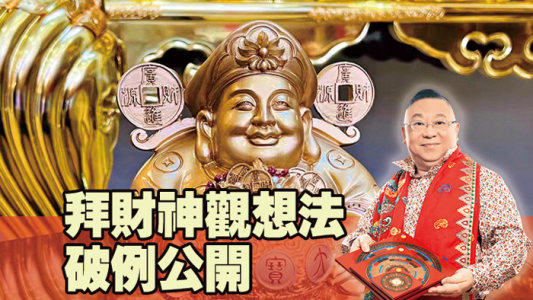 財神觀想法很特別。在佛菩薩世界中,財富是指金銀珠寶,而不會跌一張支票下來。所以,你想祈求財富,要觀想由自己家的天花板跌下很多七寶。「七寶」是指金、銀、琉璃、硨磲、瑪瑙、琥珀、珊瑚。一邊觀想一邊唸誦財神真言。這是密宗的財神法門,今次破例公開。