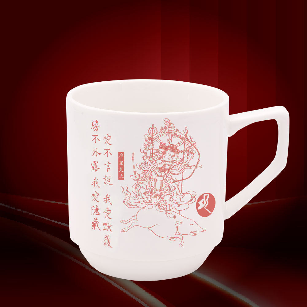 一「杯」子,一「輩」子!得此杯子者是與密法結緣一輩子。今年設計的「金胎合曼杯」不但是一對金胎曼荼羅,還有個特殊的功能。當你倒入熱水時,你會看到杯子上顯現出弘法大師和摩里支天神,加以持咒之後再自己飲用,是與大師瑜伽和天神結緣。可作壇上供杯使用。這是一直隱杯,教你要學隱形!