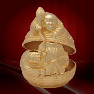 「九運大金籮」是「和合二仙」風水物,是掌管和平和喜悅的神仙,融合在一金色葫蘆上。催旺夫妻恩愛,眾緣和合,家中的子女也可藉此而催旺婚姻,家和百事興,財富便會滾滾而來。亦是催旺公司老闆與員工同心同力的最好風水物。