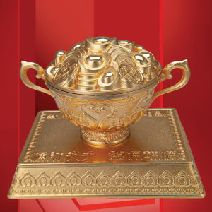 ○在金飯碗中放首飾、錢幣當作「財餌」!