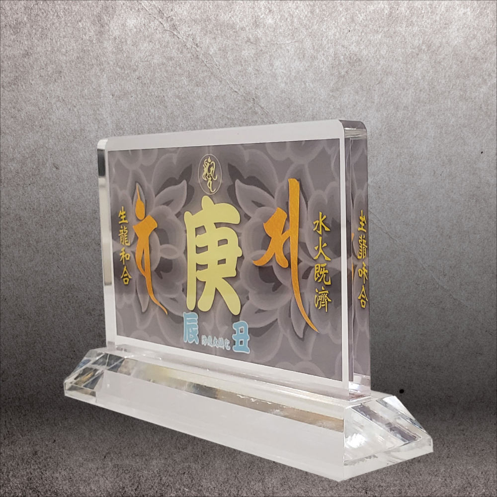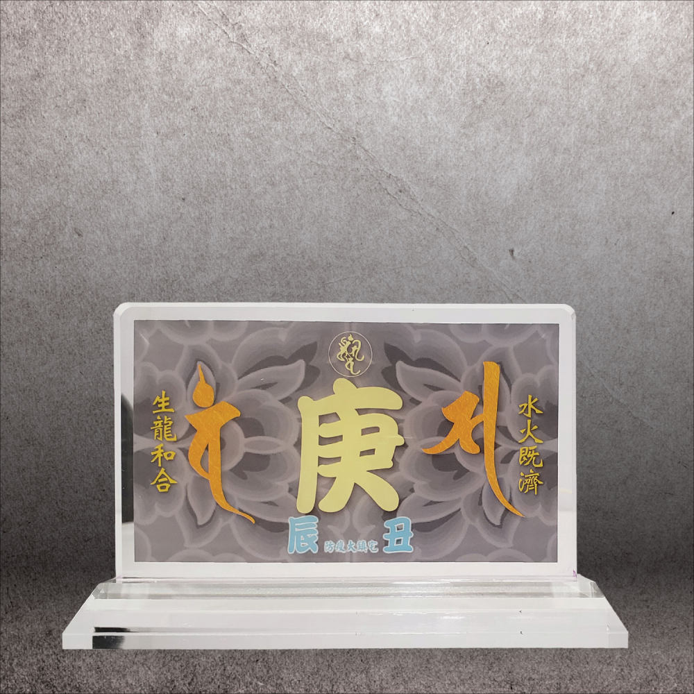 大師首創防疫吉祥物!大師根據子平術數「庚」「辰」「丑」乃降伏瘟疫之密碼,設計此防疫枱座,並加以密宗梵文種子字加持五行「金」與「水」,化解瘟疫「火熔金」之火毒,散熱有功,可保健康平安,乃疫情期間公司、家居、店舖及外出旅遊時,必備之傍身吉祥物!